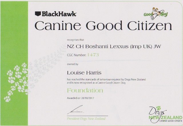 NZ Ch. Boshanti Lexxus JW CGCF (Imp. UK)